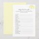 Das ist eine Baby Word Scramble Baby Duschspielkarte. Niedlicher gelber Schirm auf weißem Hintergrund vorne und gelber Hintergrund mit weißen Polka-Punkten auf der Rückseite.
