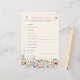 Dieses hübsche, sommerliche und elegante Baby-Dusche-Wort Rührei-Game-Karte verfügt über ein weiches pastellfarbenes Feld mit zarten Wildblumen mit Schmetterlingen, Hummeln und Ladybugs. Sie können den gesamten Text an Ihre spezifischen Bedürfnisse anpassen. Bitte kontaktieren Sie den Designer für alle passenden Produkte, die nicht verfügbar sind. Die Antworten auf die verworrenen Worte lauten: 1. Kinderzimmer 2. Fütternd Flasche 3. Schritt 4. Windeln 5. Pflegekissen 6. Babykleidung 7. Baby Monitor 8. Windelcreme 9. Babydusche 10. 11. Schnuller 12. Blanket