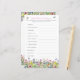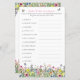 Diese hübsche, sommerliche und lustige Baby-Dusche-Rührei-Spielkarte bietet ein farbenfrohes Feld an zarten Wildblumen mit Schmetterlingen, Hummeln und Ladybugs. Sie können den gesamten Text an Ihre spezifischen Bedürfnisse anpassen. Bitte kontaktieren Sie den Designer für alle passenden Produkte, die nicht verfügbar sind. Die Antworten auf die verworrenen Worte lauten: 1. Kinderzimmer 2. Fütternd Flasche 3. Schritt 4. Windeln 5. Pflegekissen 6. Babykleidung 7. Baby Monitor 8. Windelcreme 9. Babydusche 10. 11. Schnuller 12. Blanket