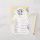 Dieses Baby zeichnet sich durch eine Duschspielkarte aus, die einen gelben und grauen Elefanten mit Ballons und Konfetti enthält. Sie können das Spiel personalisieren, indem Sie auf den Button "Anpassen" klicken. ANTWORTSCHLÜSSEL: 1. Windeln, 2. Wiege, 3. Rattle, 4. Flasche, 5. Schnuller, 6. Schwangerschaft, 7. Formel 8. Teddy Bear, 9. Hoher Vorsitz, 10. Stroller, 11. Baby Monitor, 12. Rattle, 13. Puder, 14. Mobil, 15. Brustpumpe, 16. Blanket, 17. Autositz, 18. Weinen, 19. Kinderzimmer, 20. Windelcreme