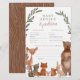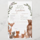 Eine niedliche Babyberatungs- und Vorhersagekarte mit handgemalten Waldtieren in einem grünen Rahmen. In der Mitte der Karte können die Gäste ihre Geburtsvorhersagen, Ähnlichkeitsvorhersagen und Ratschläge für die neuen Eltern schreiben. Diese Karte wurde erstellt, um unseren "Forest Friends & Woodland Greenery Baby Shower" Einladungen zu entsprechen. Sehen Sie sich die auf dieser Seite verlinkte Sammlung an, um Produkte zu koordinieren.