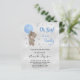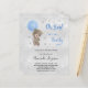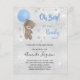 Für eine Babydusche, die einen kleinen Jungen feiert. Ein Imitat silber metallisch aussehender Hintergrund. Ein Teddybär mit blauen Ballonstern und Imitaten Glitzer Staub. Personalisieren und fügen Sie den Namen der Mutter zu sein und Party-Details. Der Name und der Text: Oh Junge! und Bearly sind mit einem handgeschriebenen Stilskript geschrieben.