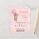 Für eine Babydusche, die ein Babymädchen feiert. Ein rosa Imitat metallisch aussehend Hintergrund, mit Imitaten silberner Glitzer Staub. Ein Teddybär, der einen rosa Ballon hält. Personalisieren und fügen Sie den Namen der Mutter zu sein und Party-Details. Oh Baby! und Bearly sind mit einem handgeschriebenen Stift geschrieben.