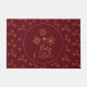 Eine Türmchen mit einer Illustration extravaganter goldener Schneeflocken mit eleganten kristallinen Formen. Trendy Typografie sagt: Baby es ist kalt draußen. Roter bordeauxroter Hintergrund und goldenes Schneeflockenmuster.