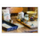 Entwürfe durch Susan Savad -- Die Dame dieser Vintagen Küche hat mitten in dem Herausschneiden ihres Teigs mit Plätzchenschneidern und der Platzierung sie auf ein Plätzchenblatt Recht, das bereit ist gebacken zu werden.