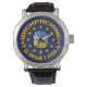Uhr, Vintage Männeruhr mit schwarzem Lederarmband