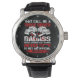 This bold and humorous wall clock makes a strong statement about the true nature of a truck driver. Against a black background, it features two white semi-trucks in a mirrored design. The text, in distressed white and red, reads: "THEY CALL ME A TRUCK DRIVER BECAUSE BADASS DIESEL BURNING GEAR JAMMING MOTHER FU***R IS NOT AN OFFICIAL JOB TITLE". This design celebrates the rugged, no-nonsense spirit of professional drivers. You can customize the color of the frame to any color you desire by going into the design tool.