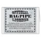 Offizielle Bagpipe-Lizenz. Es gibt viele Aktivitäten, die verschiedene Ausrüstungen beinhalten, wie z.B. den Betrieb eines Automobils, Flugzeugs usw., die eine spezielle Ausbildung und Lizenz erfordern. Musik zu machen ist etwas, das normalerweise Training erfordert: Unterricht, Übung und Probe. Sollte nicht von den künftigen Musikern verlangt werden, dass sie eine Lizenz für den Betrieb der Ausrüstung, d.h. ihres Musikinstruments, erhalten?