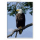 Ein reifer Adler aus Bald hoch oben in einem Tannenbaum, der den Ozean zur Nahrungssuche beobachtet.