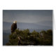Reifender Adler, der in einem Tannenbaum mit Vancouver Island im Hintergrund sitzt.
