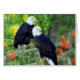 Zwei schöne Glatzenadler im Willow Park Zoo und einige Blume stehen ihnen gegenüber.