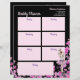 Auf der Basis meiner Aquarellbilder entwarf ich eine Ballerina, die in ihren Zehenschuhen rosa Kleid trägt. Das Design hat ein Herz-Muster über schwarzem Hintergrund. Das Design ist für wöchentliche Planer unterteilt in sieben tägliche Abschnitte und kann mit eigenen Texten angepasst werden.