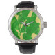 Uhr, Vintage Männeruhr mit schwarzem Lederarmband