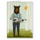 Illustration der tragenden Kleidung eines Hipsterbären im Holz, welches das Banjo spielt.