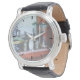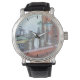 Uhr, Vintage Männeruhr mit schwarzem Lederarmband