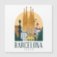 Barcelona Spanien Skyline Vintage Magnetkarte