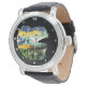 Uhr, Vintage Männeruhr mit schwarzem Lederarmband