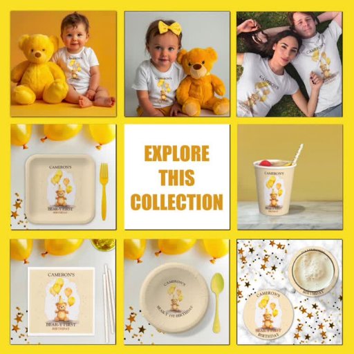 1 geburtstaggeburtstaggelbbbärgelbballonsgeschlechtsneutralteddybärkindergeburtstagmeilensteingelber geburtstag