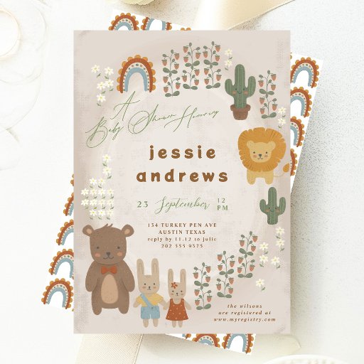 Bären Sie die sonnigen Löwenkakteen Woodland unisex Baby Shower Paper Teller *Für zusätzliche Designs oder Schreibwaren kontaktieren Sie mich *vollständig editierbar und anpassbar : Farbwechsel und Text Teil einer Kollektion: Eintauchen in den faszinierenden Charme der Natur mit meiner bezaubernden Modern Woodland Baby Shower Collection. Diese durchdacht gestalteten, unisex Baby-Dusche-Einladungen sind perfekt für zukünftige Eltern, die den Reiz und den Charme der Natur Liebe. Diese Kollektion vereint wunderbar das Thema der Waldkreaturen mit ihrer zarten pastellfarbenen Palette, in der Bären, Hasen, Löwen, Kakteen und Regenbogendesigns zu finden sind. Die malerischen Elemente und die moderne Gestaltung machen es zu einer wunderbaren Wahl für eine schicke und einzigartige Babydusche. Jedes Stück ist sorgfältig für eine wirklich persönliche Touch entworfen und behandelt Ihre Gäste zu einer so besonderen Einladung wie die bevorstehende Ankunft. Die sanften Pastelltöne verleihen dem Ganzen ein behagliches und einladendes Ambiente, das sich perfekt für die Dusche von Mädchen oder Jungen eignet. Das Design vereint moderne, illustrierte Grafiken und traditionelle Textarten und verleiht ihnen einen modernen, zeitlosen Anklang. Alle Karten werden auf hochwertigen, langlebigen Cardstock gedruckt, was Langlebigkeit und ein Premium-Gefühl garantiert. Das ist nicht nur eine Einladung, sondern ein Sake.