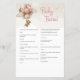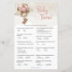 Machen Sie sich mit der Spielkarte "Girl baby bear pink braune ballons Baby Trivia", die speziell für das Thema "We can bearly wait" bei Ihrer Babydusche entwickelt wurde, auf ein Abenteuer vorbereitet! Diese bezaubernde Karte ist mit zauberhaften rosa und braunen Ballons geschmückt, die sich perfekt für eine Feier mit Spannung und Spaß eignen. Also, sammeln Sie Ihre Gäste, setzen Sie Ihre Entdecker-Hüte auf und bereiten Sie sich darauf vor, Ihr Wissen mit einem Hauch von Mäßigkeit an der Babydusche zu testen, wie niemand sonst. Lass die Spiele beginnen! Kontaktieren Sie mich für die passenden Artikel oder für die Anpassung, Blush Rose © Baby
