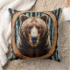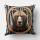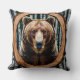 Ein beeindruckendes Bärenportrait, gerahmt durch eine aufwändig gestaltete, runde Holzbrücke. Die Felle des Bären sind in Brauntönen gehalten, was sein majestätisches Aussehen unterstreicht. Seine durchdringenden Augen begeistern die Zuschauer, während die Kulisse schlanke Birken umfasst, die die natürliche, bewaldete Umgebung verbessern. Die Kombination von Bär und Holzrahmen schafft ein faszinierendes visuelle, das Wildnis mit künstlerischer Touch verbindet.