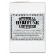 Offizielle Baritone-Lizenz. Es gibt viele Aktivitäten, die verschiedene Ausrüstungen beinhalten, wie z.B. den Betrieb eines Automobils, Flugzeugs usw., die eine spezielle Ausbildung und Lizenz erfordern. Musik zu machen ist etwas, das normalerweise Training erfordert: Unterricht, Übung und Probe. Sollte nicht von den künftigen Musikern verlangt werden, dass sie eine Lizenz für den Betrieb der Ausrüstung, d.h. ihres Musikinstruments, erhalten?