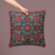 Die tiefweinrote Basis mit verzierten Motiven verleiht diesem Kissen ein gemütliches und romantisches Ambiente, das sich ideal für gemütliche und dennoch elegante Räumlichkeiten eignet.