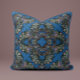 Dieses aquamarine Kissen bringt ein Gleichgewicht zwischen Reichtum und Ruhe, mit seinen aufwändigen barocken Details, die an der dunklen Basis leuchten.