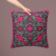 Das heiß rosa Kissen mit seinem barocken Muster ist lebendig und spielerisch und macht in modernen oder eklektischen Zuhause eine wagemutige Aussage.