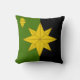 "Per Blassvert und Einweg, ein Kompassstar und im Kanton ein Eichenblatt oder." Abzeichen des Volkes für die Baronie Brendoken in der Gesellschaft für kreativen Anachronismus. Die Kissenrückseite ist ein mittelalterliches Muster in der Farbkoordinierung.