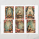 A lavish sheet of cutout ephemera cards featuring baroque-inspired beauty scenes bathed in soft, ethereal light. Each card captures a moment of intimate elegance: ornate gilded vanities, polished mirrors rimmed in scrolling goldwork, and velvet sitting stools in plush jewel tones that invite a sense of old‑world luxury. Draped curtains and rich textiles frame every vignette, their folds rendered in deep, painterly shadows that enhance the dreamy, atmospheric glow. Each piece has the look of a treasured keepsake pulled from a vintage dressing room. Soft blushes, warm ambers, and muted creams blend with the shimmer of metallic accents, creating a palette that feels both romantic and timeless.