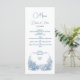 Dieses exquisite Hochzeitsmenü verkörpert den prachtvollen Charme des barocken Viktorianischen Stils. Es zeichnet sich durch ein glattes, staubblau verziertes Design aus, das mit aufwändigen Blumenmustern und zarten Wirbel geschmückt ist und ein Gefühl zeitloser Eleganz hervorruft. Die Typografie, die zwar relativ modern ist, weist jedoch eine klare Linienführung und ein elegantes Aussehen auf, was dem Gesamtbild eine zeitgemäße Touch verleiht. T Leicht zu bearbeiten Moderne Typografie