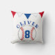 Baseball Ball Bunting Fahnen Kindergeburtstag Kissen werfen. Das Design hat Baseball und bunte Fahnen in rot, weiß und blau. Geben Sie Ihren Namen und Ihr Alter ein.