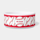 Diese Haustierschüssel kennzeichnet die roten und weißen Baseball auf einem roten Hintergrund für ein spezielles Haustier des Sportfans. Fertigen Sie leicht den Namen besonders an oder löschen Sie ihn einfach.