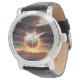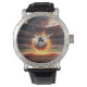 Uhr, Vintage Männeruhr mit schwarzem Lederarmband