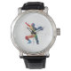 Uhr, Vintage Männeruhr mit schwarzem Lederarmband