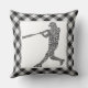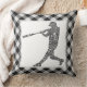 Baseball Softball Player Calligram Kissen Kissen werfen. Schwarzer Gingham Hintergrund. Erhältlich in den Größen 16" x 16" oder 20" x 20" und in Baumwolle oder Polyester. Verwenden Sie das Menü "Größe" auf der rechten Seite des Bildschirms, um Kissen zu wechseln.