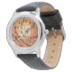 Uhr, Vintage Männeruhr mit schwarzem Lederarmband