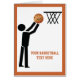 Basketballspieler mit vertikaler Grußkarte mit minimalistischem Symbol einer schwarzen Silhouette eines Basketballspielers, der versucht, den orangefarbenen Ball in den Basket zu setzen und den Text auf weißem Hintergrund mit einem Rand in der gleichen Farbe des Balls. Personalisieren Sie es und fügen Sie den Text "Bester Basketballspieler" oder Monogramm, Name oder Ihre Nachricht. Das perfekte Geschenk für den Basketballspieler oder Liebhaber in Ihrem Leben. Einige Elemente mit freundlicher Genehmigung von vectorportal.com.