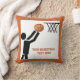 Basketballspieler mit Kugelkissen, das eine minimalistische Ikone einer schwarzen Silhouette eines Basketballspielers enthält, der versucht, den Orangenball in den Basket zu setzen, und den Text auf weißem Hintergrund mit einem Rand in der gleichen Farbe des Balls. Personalisieren Sie es und fügen Sie den Text "Bester Basketballspieler" oder Monogramm, Name oder Ihre Nachricht. Das perfekte Geschenk für den Basketballspieler oder Liebhaber in Ihrem Leben. Einige Elemente mit freundlicher Genehmigung von vectorportal.com.