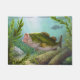 Ein Großmund Bass-Fisch in einer nahen magischen Einstellung des Grases und des funkelnden Sandes. Durch Amanda Diehl, Paxdomino Entwürfe.
