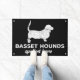 Dachshund-Jagdhunde verdarben hier, entzückendes Dachshund-Jagdhund-Silhouettebild und -text in beunruhigter Kreideart auf einem schwarzen Hintergrund.