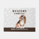 Fun Illustration eines Wachhundes mit Brille. Der Hintergrund ist ein Ausdruck von Hundepfauen