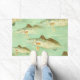 Dieses Bassmuster zeigt viele Fische, die in einem weichen, grün-blauen Hintergrund schwimmen.
