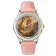 Kinderuhr aus Edelstahl mit rosa Lederarmband