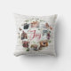 Dieses weihnachtliche Kissen mit Themenkissen ist eine festliche Ergänzung Ihrer Urlaubsstimmung und bietet acht Fotos, die in einem runden Kranzgeflecht mit grünen Wasserfarben, Kiefergesteinen und roten, holzigen Beeren auf weißem Hölzerhausboden angeordnet sind. "Joy" erscheint in der Mitte in festlicher rot handgeschriebener Schrift mit Pinsel Schrift Typografie. Personalisieren Sie dieses einzigartige Foto Collage Design mit Ihrem Familiennamen auf der Rückseite, umgeben von einem passenden Kranz.