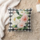 Bauernhaus Hütte Watercolor Black Buffalo Karo Floral Throw Kissen. Baumwolle vorhanden. Rosa und weiße Blume.