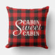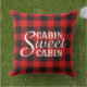 Einzigartiges, elegantes und dekoratives Kissen im Landhausstil mit niedlichem Cabin Sweet Cabin Zitat-Text, auf einem klassisch roten und schwarzen Buffalo Lumberjack Karo Muster Design.