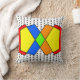 Dieses Kissen hat ein Bauhaus-Design aus überlappenden Pentagons, rot, gelb, orange, blau und grün mit schwarz gepunkteten Linien als Hintergrund.