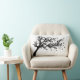 Ein starkes Schwarzweißbild eines Baumes, der im Wind geblasen wird, es sind Blätter, die in der Luft zerstreut sind. Ein perfektes Kissen für jede Dekoration.